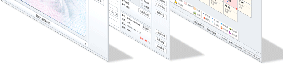 实时房态:信息全面的实时房态显示,可以设置多种显示参数信息,几乎所有前台操作均可在实时房态中实现。